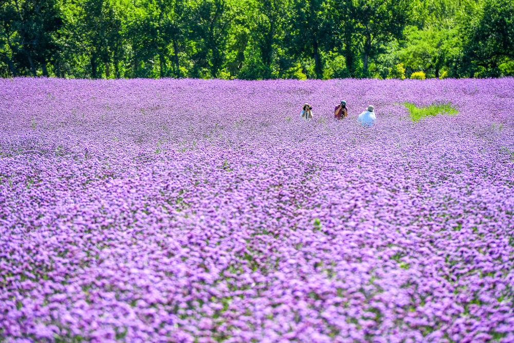 2024年8月26日,游客在查干湖花海拍照留念。