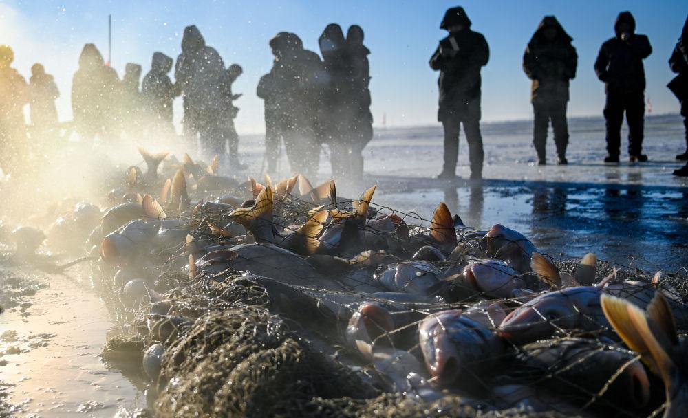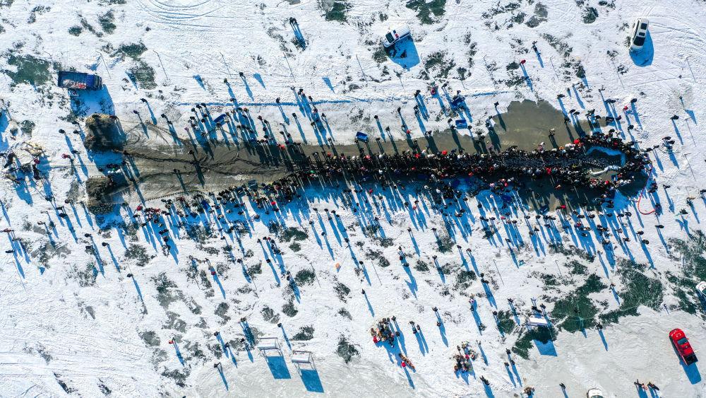 共同见证“冰湖腾鱼”盛景