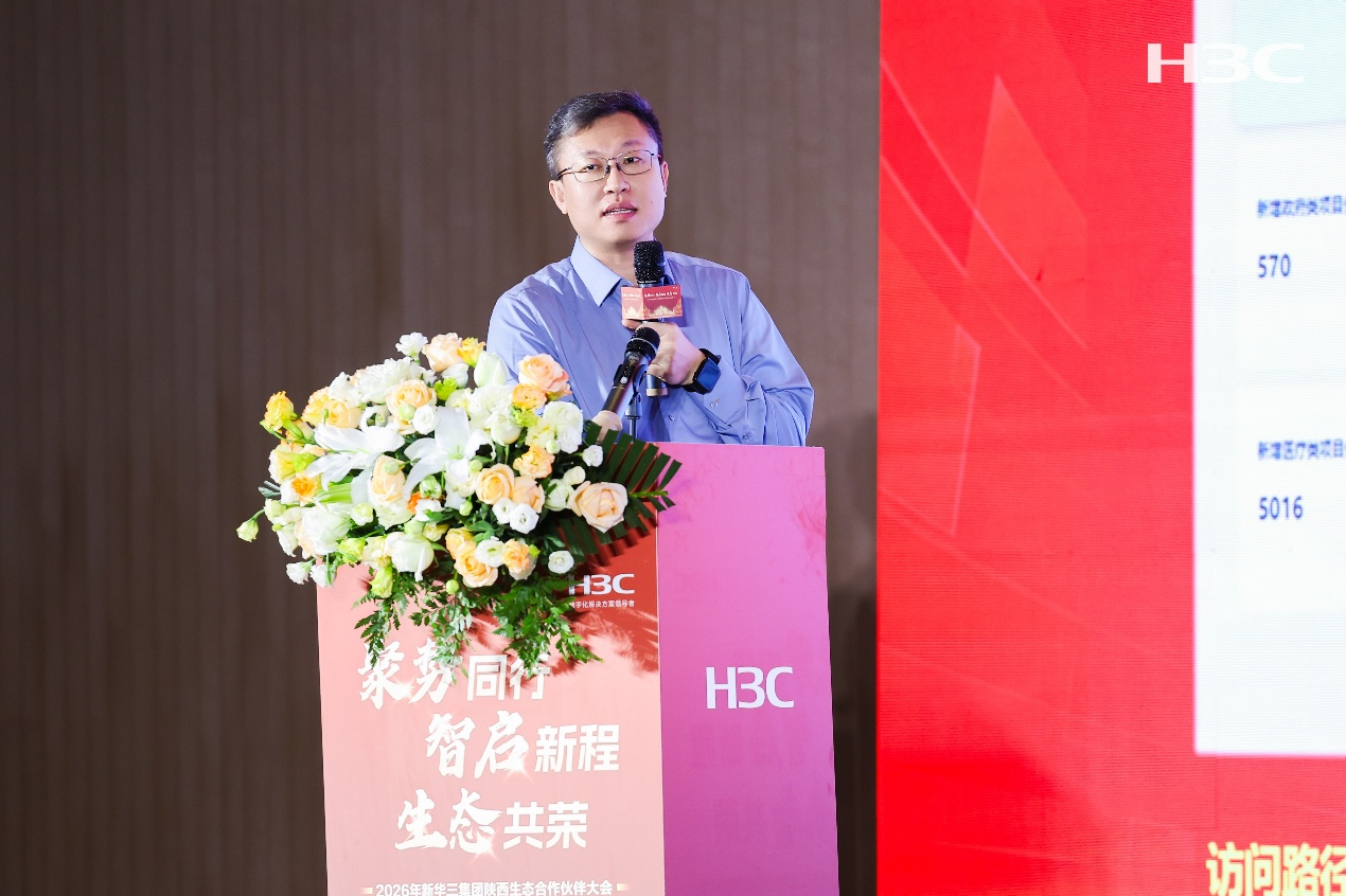 新华三集团副总裁全良影在开场致辞中向长期支持新华三发展的陕西合作伙伴致以诚挚感谢。他表示,新华三在陕西持续深耕“云-网-安-算-存-端”全产业链,在智算中心建设、智能联接升级及数据要素治理等方面取得显著突破,这些成绩离不开广大合作伙伴的深度协同。面对新一轮科技革命与产业变革,新华三始终将伙伴视为价值共创的核心力量,2026年将继续扎根陕西,与合作伙伴携手赋能区域产业升级,共同书写陕西数字经济高质量发展的新篇章。