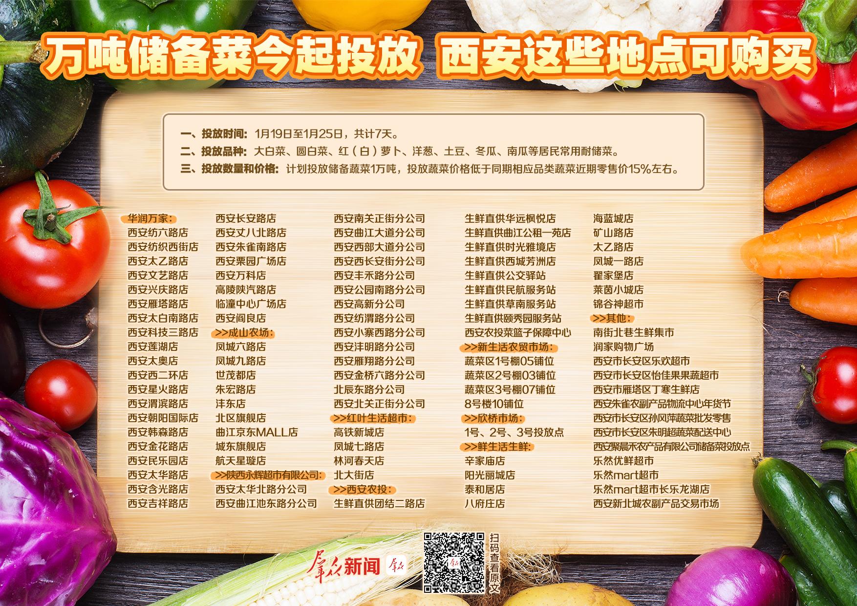 为贯彻落实西安市委、市政府关于防范应对低温雨雪天气工作部署,切实保障全市蔬菜供应充足、价格平稳,西安市计划从1月19日起投放政府储备蔬菜。