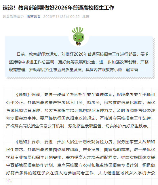 教育部关于做好2026年普通高校招生工作的通知