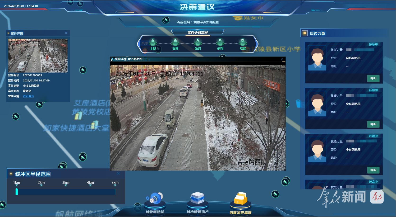 为了让城市管理更智能、更轻松,2024年底,黄陵县打造出全新的智慧城管平台。曹军形象地比喻:“这就好比给城市装上了24小时不眨眼的‘千里眼’,还配上了会思考的‘AI大脑’。”