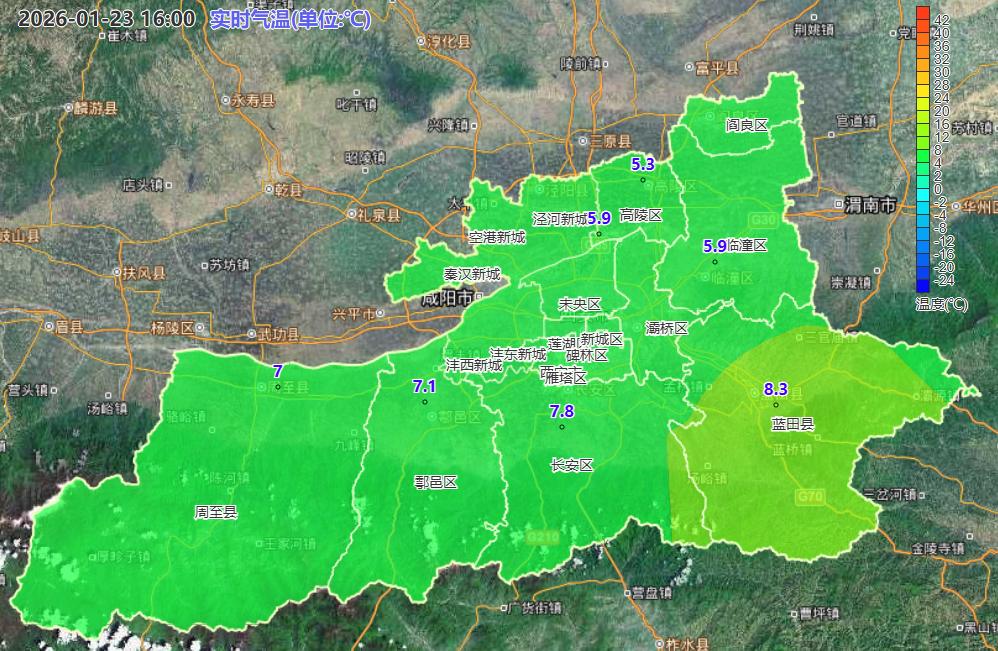 1月23日16时西安市气温实况色斑图