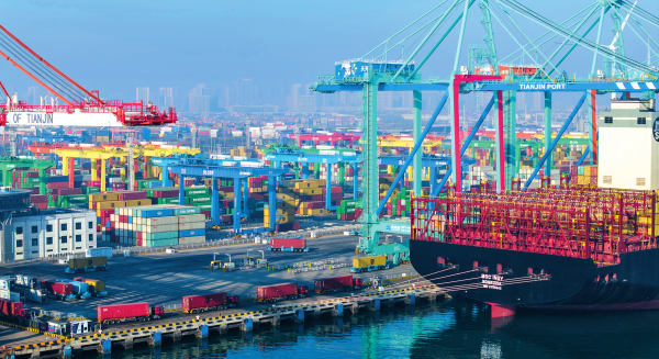 天津市港航管理局数据显示,天津港口集装箱吞吐量由2022年的2102万标准箱提升至2024年的2329万标准箱,集装箱航线由140条提升至148条,新开通美东、南美东等远洋直航航线;智慧港口“津港通”平台基本建成;港口绿电发电能力超3.2亿千瓦时,装机容量147兆瓦,较2022年提升4倍……天津港正从“货物通道”向集物流、贸易、服务于一体的“综合经济枢纽”转型。