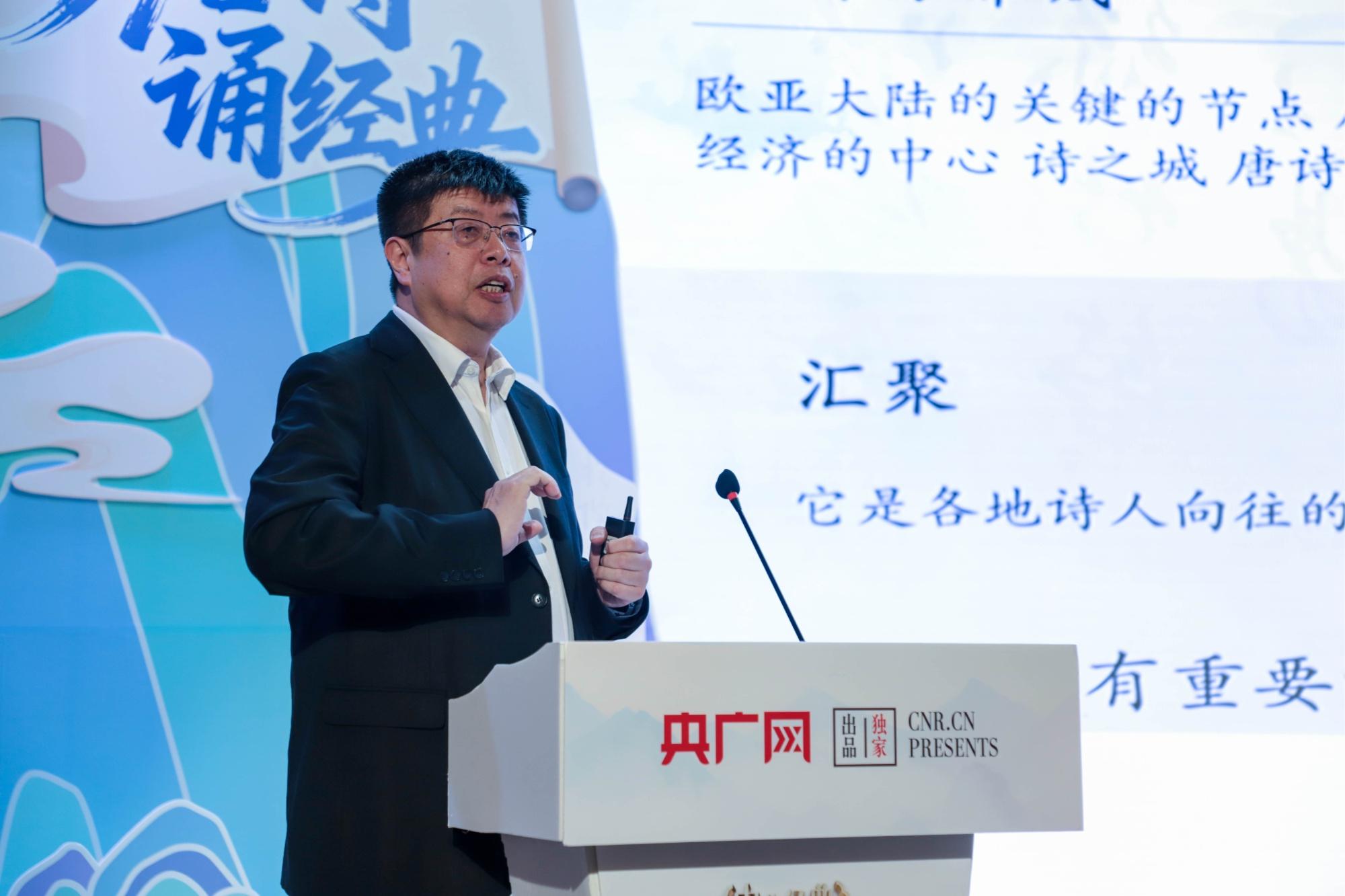活动现场,北京大学中文系教授、文化资源研究中心主任张颐武以《诗意长安 精神传承》为题,开展了一堂生动又深刻的唐诗课。中央广播电视总台著名主持人苏扬以其浑厚深沉的嗓音,深情演绎了《荡气回肠唐宋篇》。