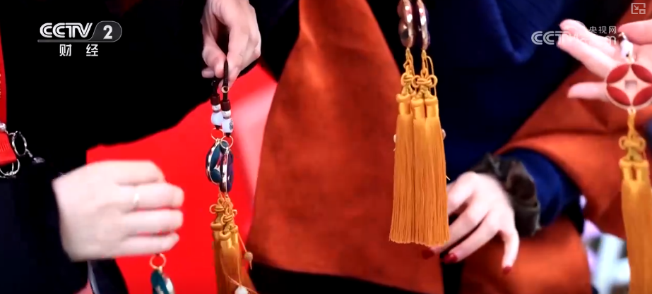 过年不仅要满足味蕾,更要装饰家居、增添趣味。在文创区,国家非物质文化遗产香云纱,被制成精美的铜钱扣、手机包等随身配饰。生肖“小马”和“财神爷”化身成为俏皮的现代文创,吸引了众多市民游客驻足挑选。