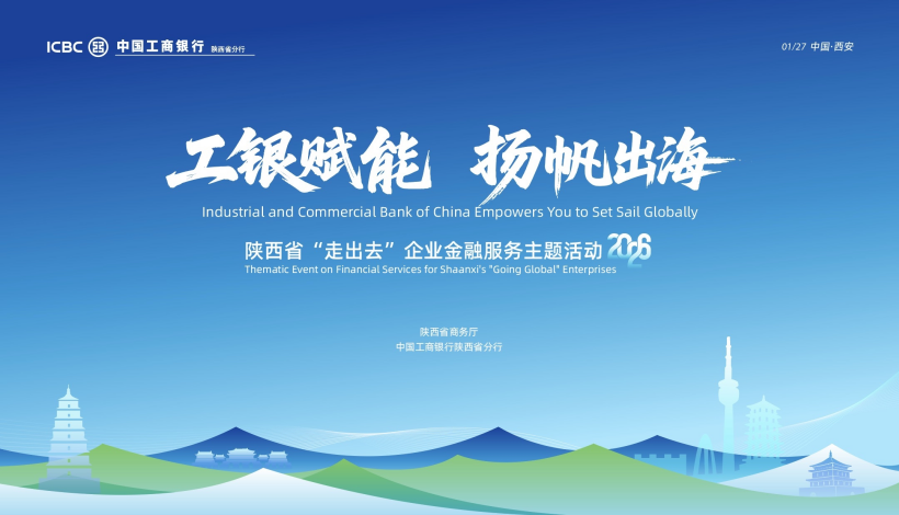 1月27日,工商银行陕西省分行联合陕西省商务厅在西安成功举办“工银赋能 扬帆出海”陕西省“走出去”企业金融服务主题活动。陕西省商务厅对外投资合作处、人民银行宏观审慎管理处、外汇管理局国际收支处,总行专项融资部、金融市场部以及工银亚洲、工银莫斯科、工银印尼、工银阿拉木图、工银利雅得分行五家海外机构,陕西省对外承包工程、制造业、赴港上市重点企业等百余名代表参加本次活动。