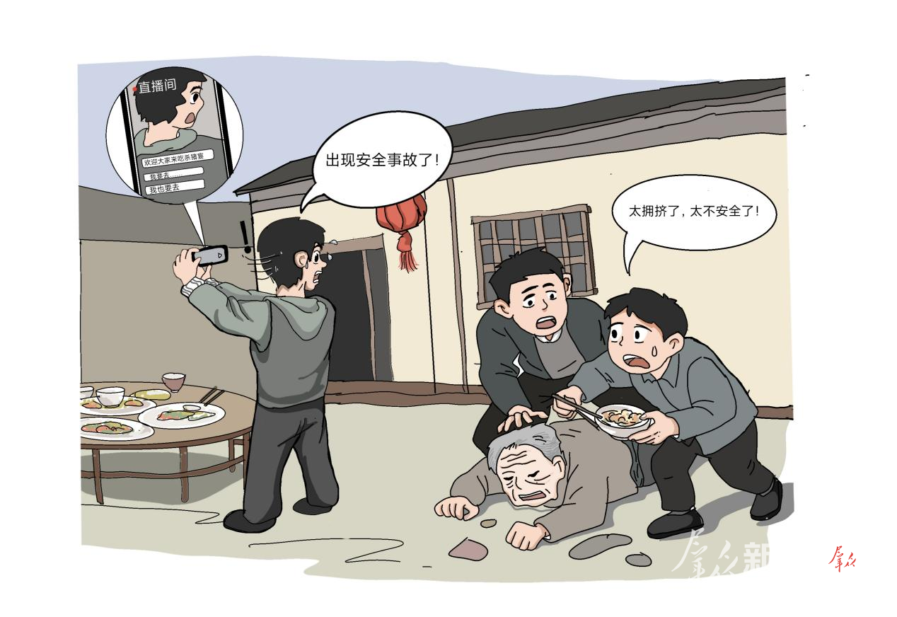 近日,重庆合川女孩“呆呆”一句“来帮忙按猪,我请你吃刨猪汤”的朴素邀约,火爆全网。随后,全国多地争相效仿,在线摇人“来吃杀猪饭”“喝刨猪汤”,但当一碗碗杀猪饭被端上互联网,各类问题便接踵而至。重庆两江新区一场“刨猪宴”因人员拥挤导致老人摔倒,引发连锁摔倒事故,被相关部门叫停;江西丰城网红“卧龙哥”筹备的百桌“杀猪宴”,现场涌入四五万人,场面混乱,甚至出现哄抢餐食行为,上演惊险闹剧。