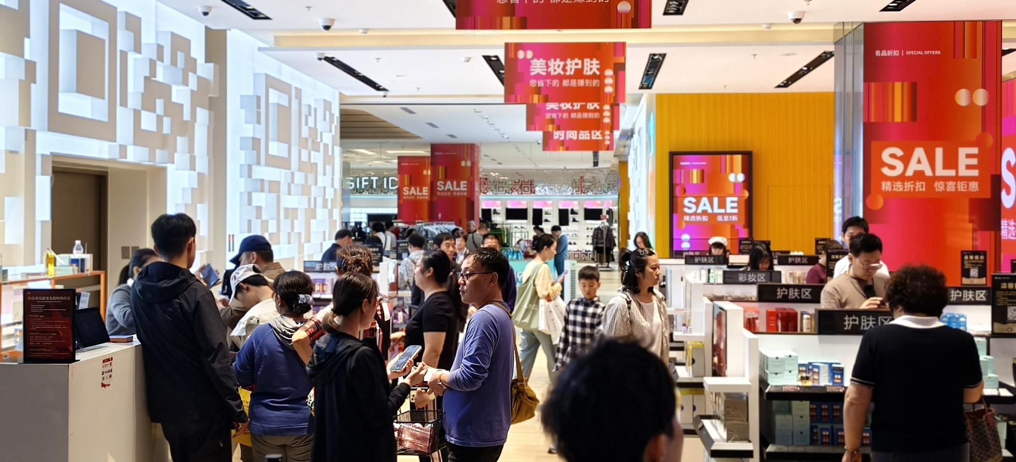 2026年1月20日,海南海口,游客在cdf海口日月广场免税店选购化妆品