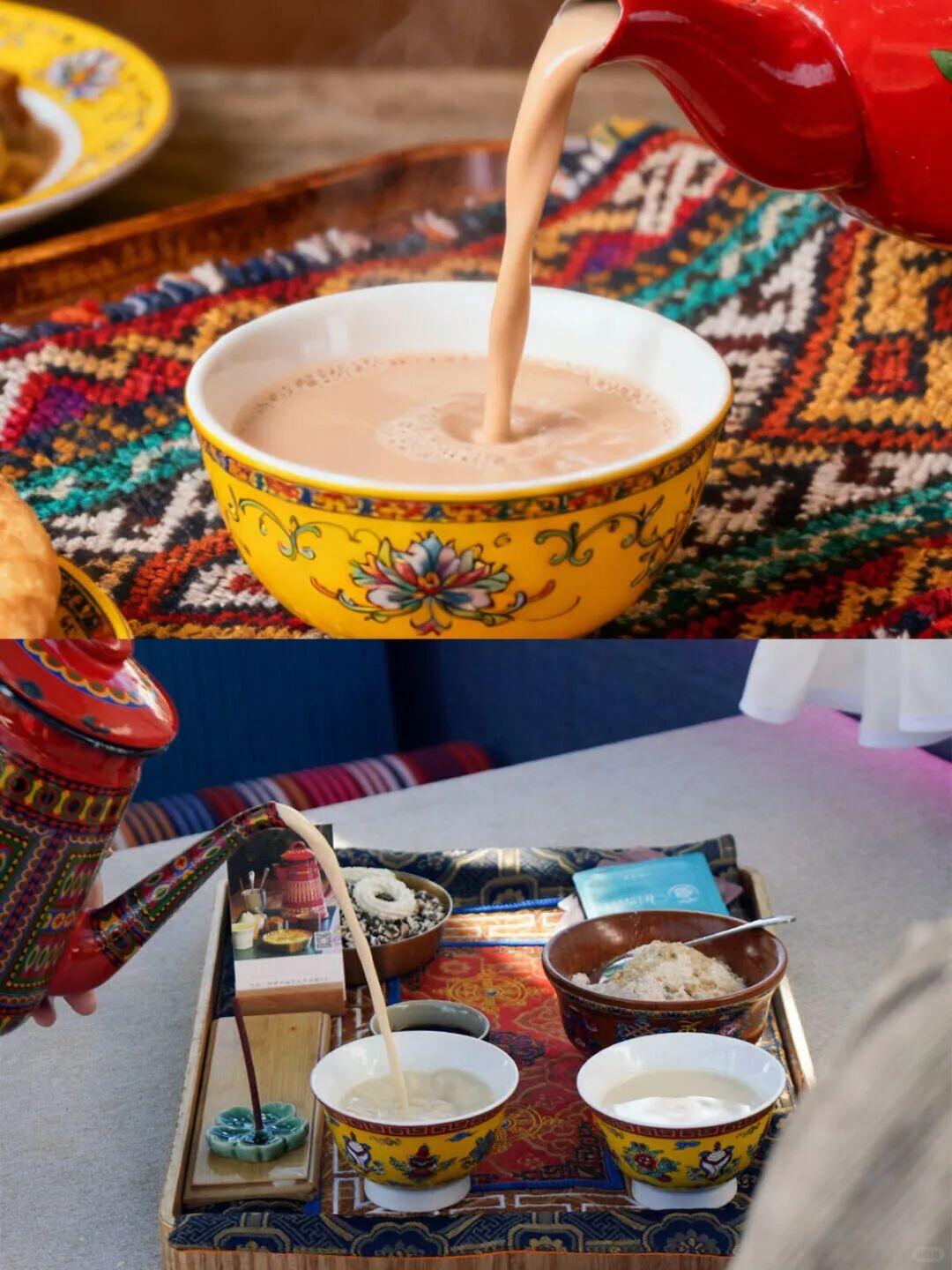 藏式甜茶醇厚丝滑、糌粑捏成了小团子,地道的藏式下午茶,让你边品美食边赏风景,别有一番风味。