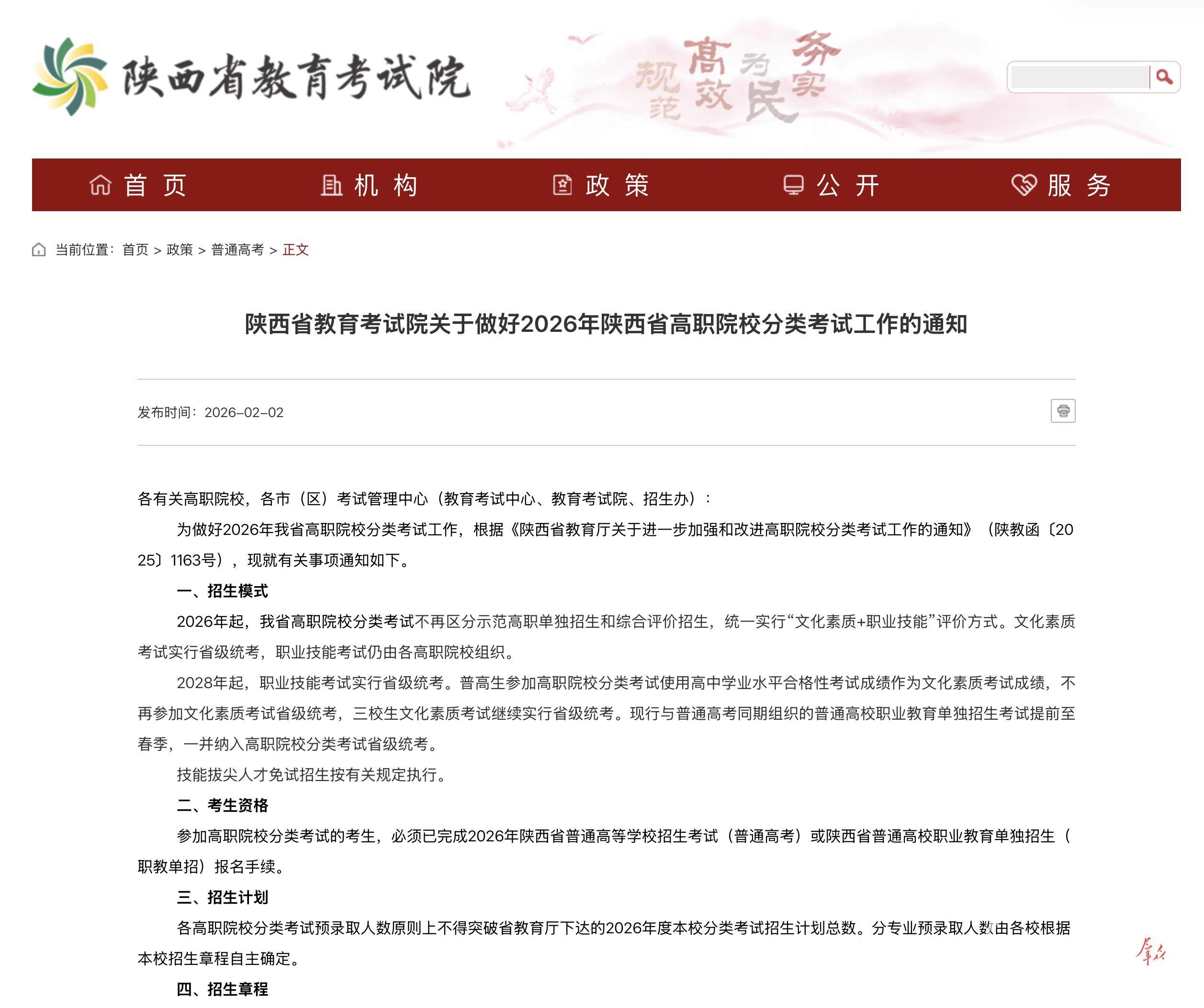 2月2日,记者从省教育考试院获悉,2026年陕西省高职院校分类考试方案出炉。