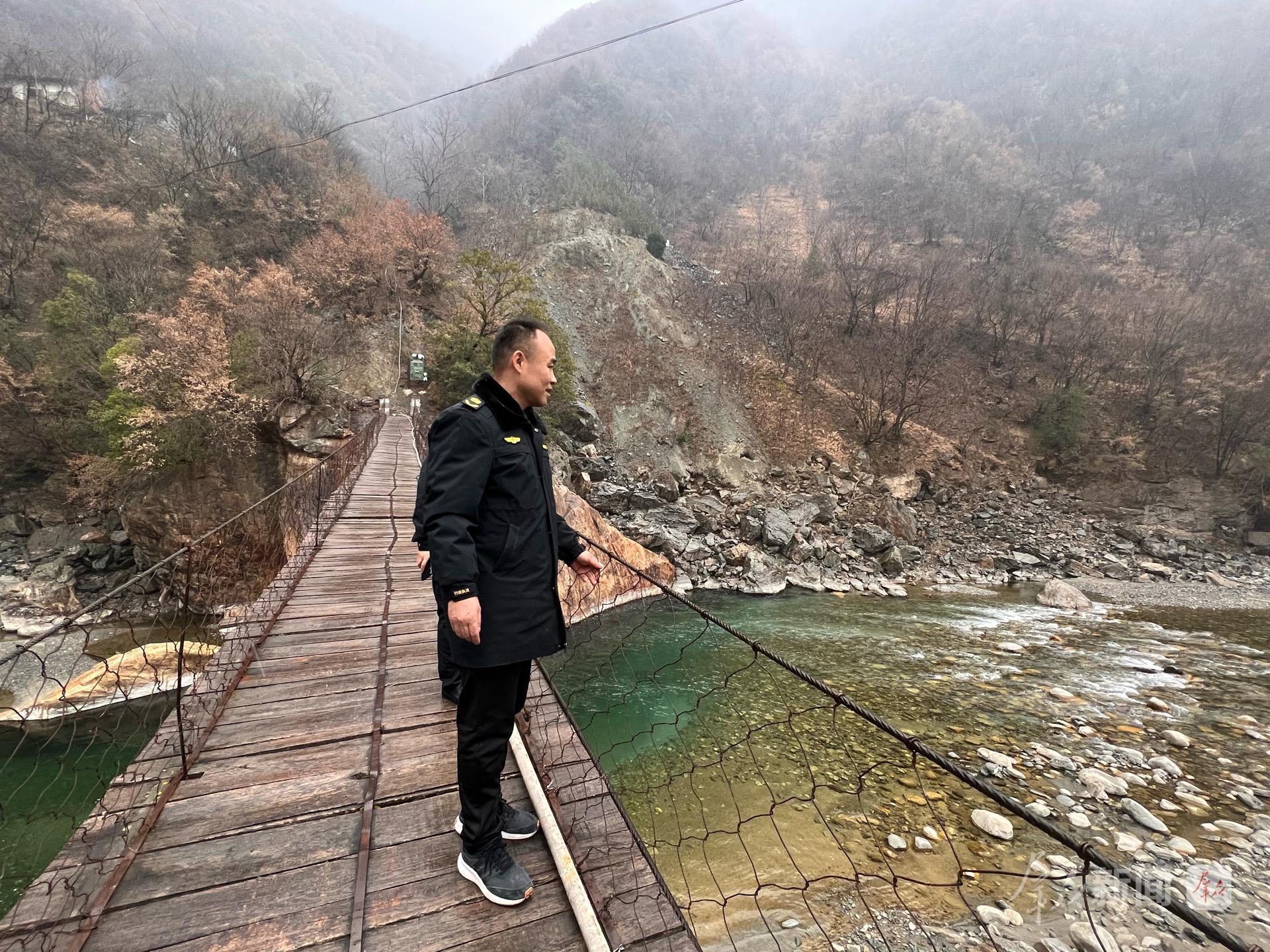 要查看清楚河道状况,必须走一座木桥。