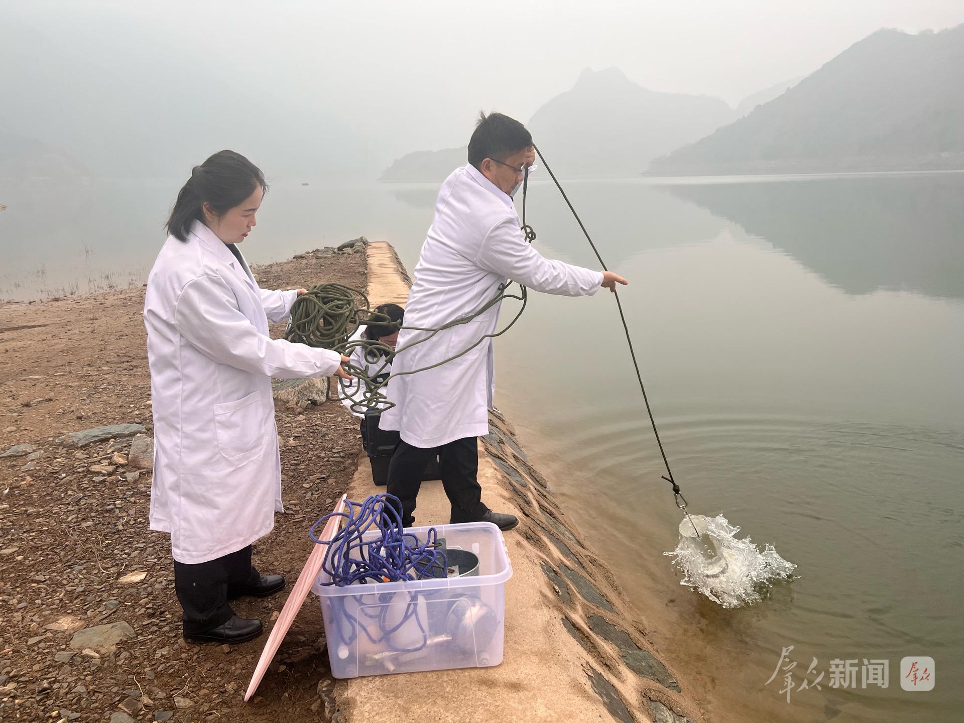 他们冒着严寒在水边完成了水质取样和快检工作。