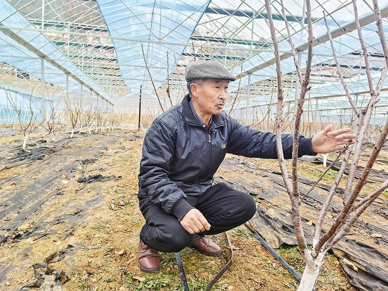 2月3日,车厘子树已经冒出花芽,黄登成满脸期待。