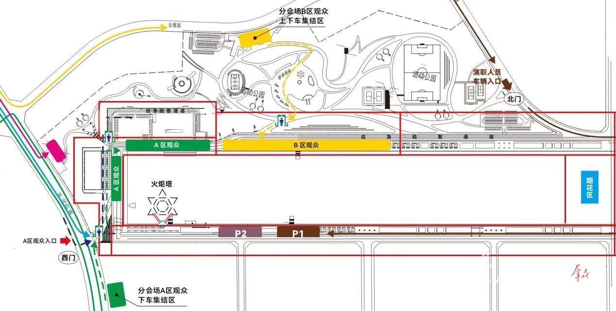 省一冬会闭幕式分会场在科创新城水上运动中心,分A区和B区两个观演区域,请大家根据自己的意愿选择。