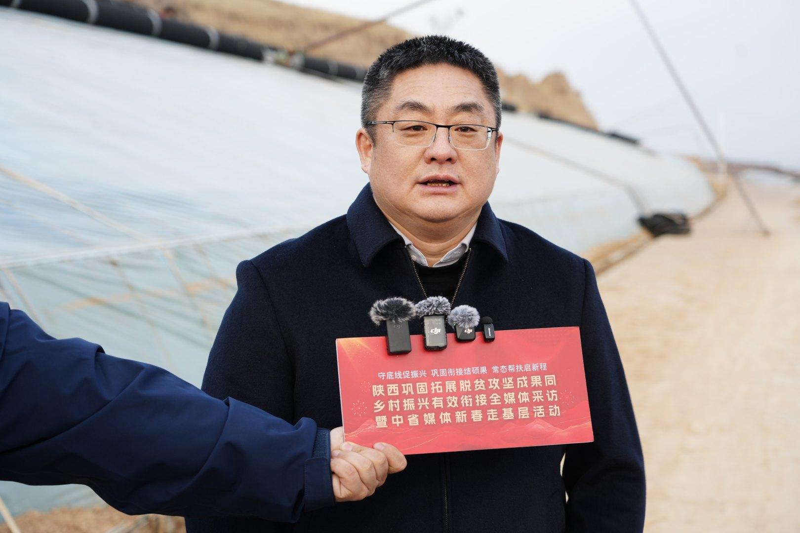 2月5日,陕西巩固拓展脱贫攻坚成果同乡村振兴有效衔接全媒体采访暨中省媒体新春走基层活动走进榆林市佳县朱官寨镇落古峁村现代农业产业园。