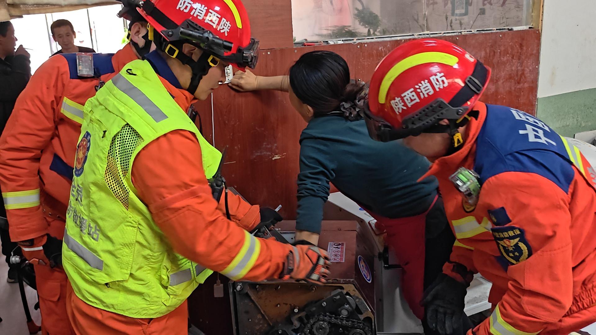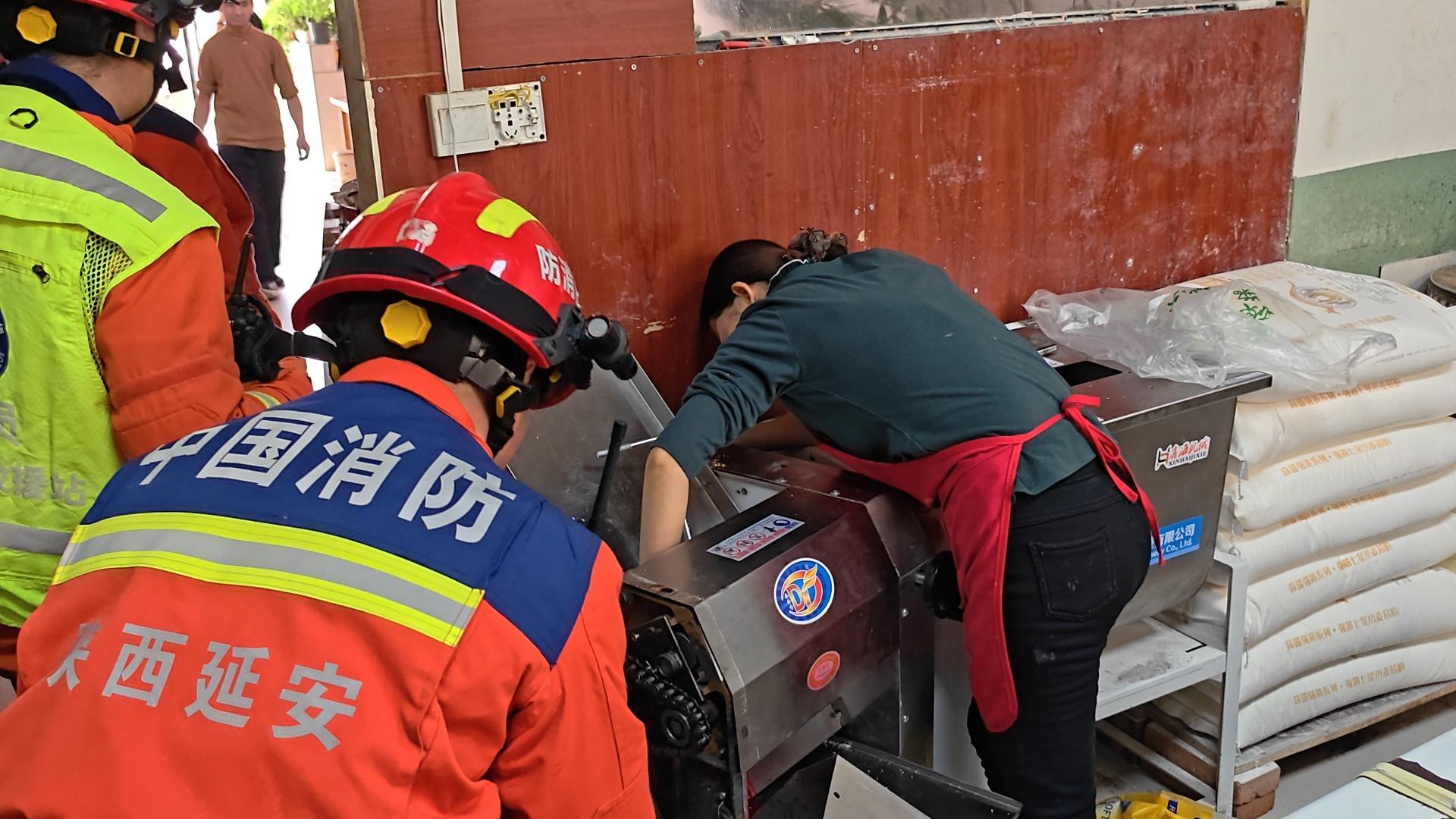 2月10日10时46分,延安市消防救援支队119指挥中心接到报警:延安市志丹县保安街道S303(范公桥)志丹基站家属楼内,一名面点师傅的手被压面机夹住。指挥中心立即调派双河消防救援站1辆消防车、5名救援人员前往处置。