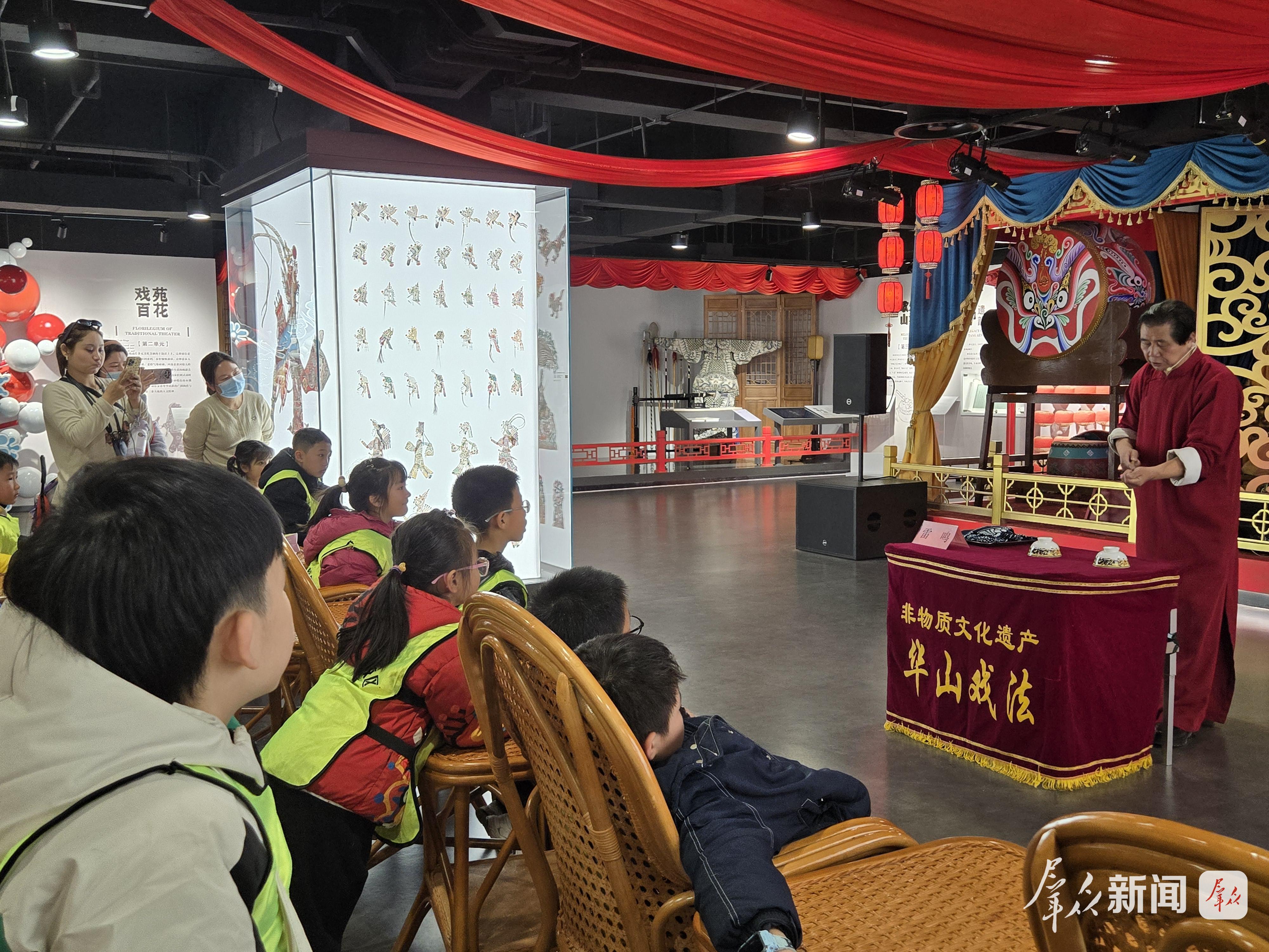 非遗小剧场内,掌声与喝彩不断。华山戏法第四代传承人雷鸣将表演桌挪至观众席前,仅凭一根棍子、两只碗、三颗球,便以娴熟手法将“华山戏法”的神奇展现得淋漓尽致,引得现场观众目不转睛、阵阵欢呼。