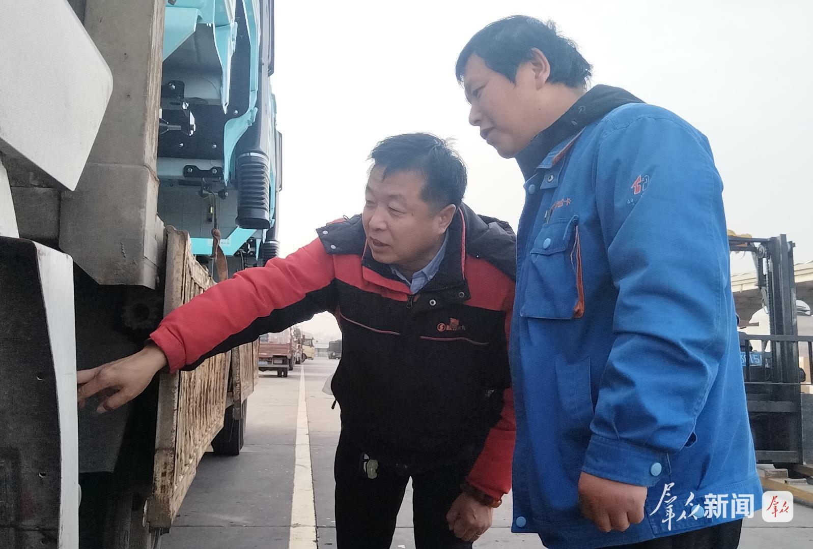 去年11月,富平县小伙樊顺顺进入通汇物流西安车队工作。他今年27岁,接触货运时间短,还摸不清工作的门道。从绑扎货物到检查车况,从维修车辆到处置危急状况……贾永刚时常“点拨”他。
