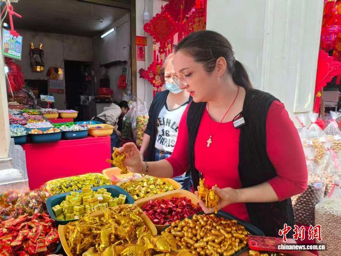 2月12日,爱娃在海口骑楼老街采购年货。 中新网记者 张茜翼 摄