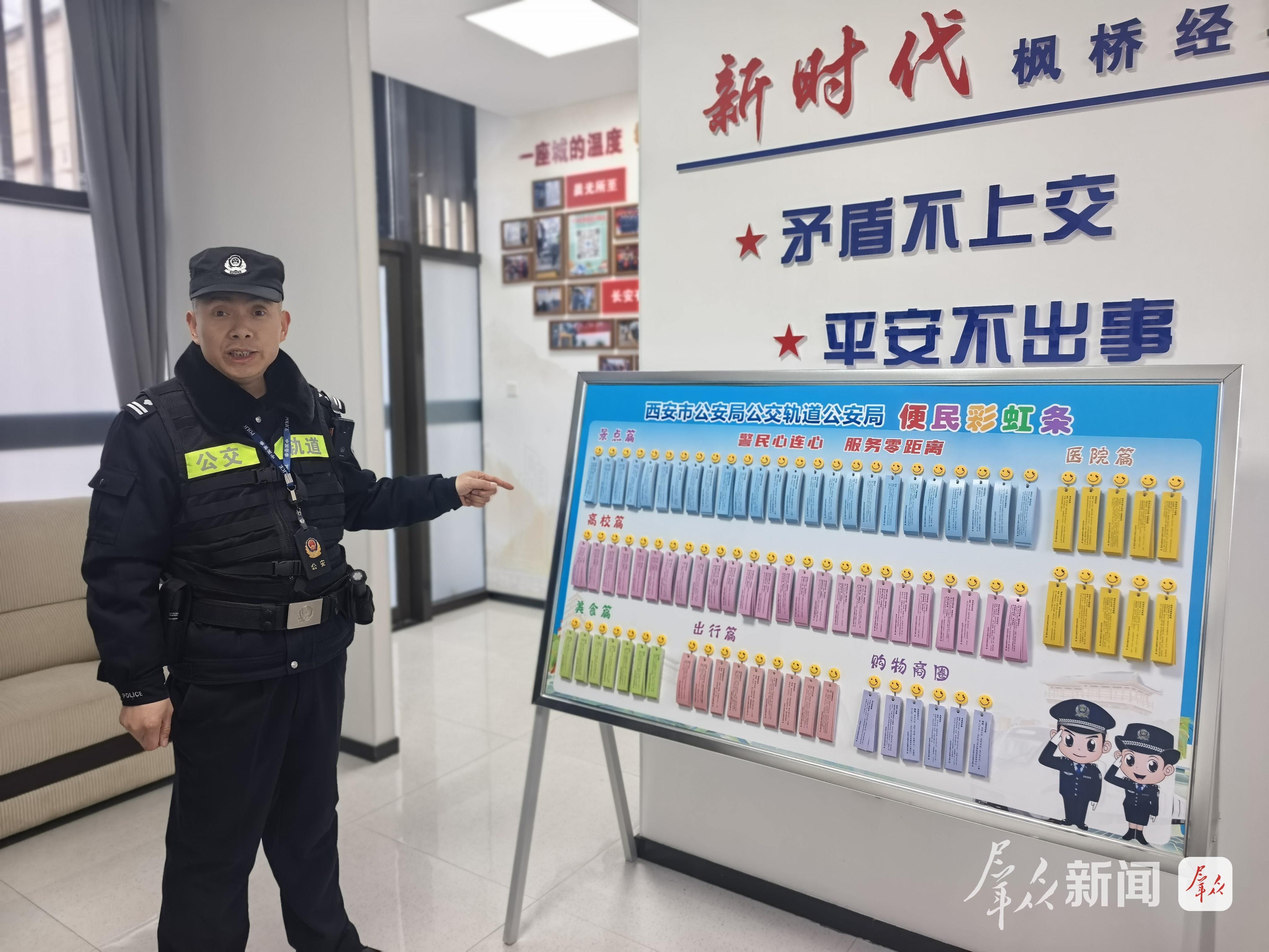 2月16日9时许,除夕的西安北站,年味裹着人流的暖意,南广场进站口的一处执勤点旁,西安市公安局公交轨道公安局十八大队民警王小兵顶着寒风,为来来往往的旅客服务。