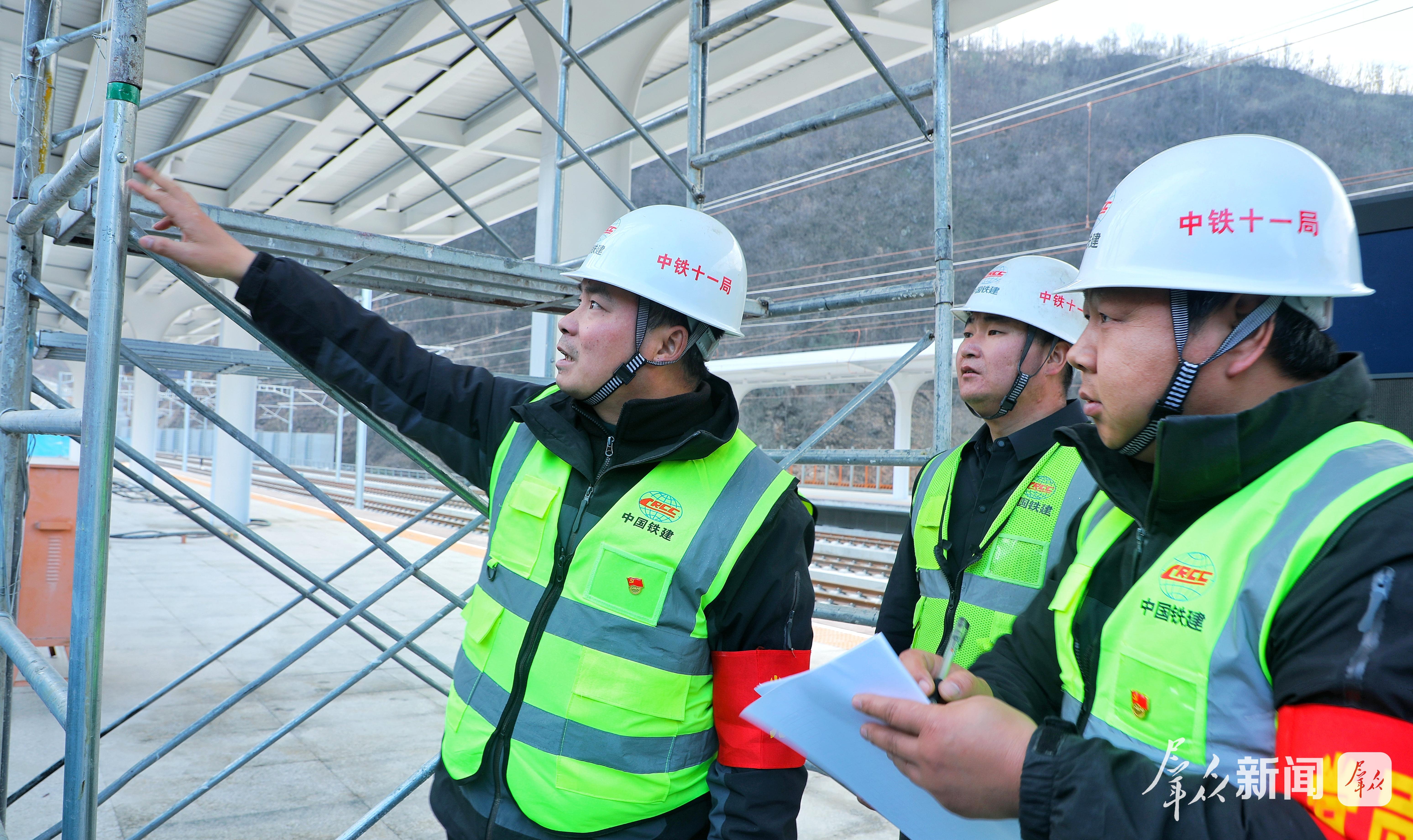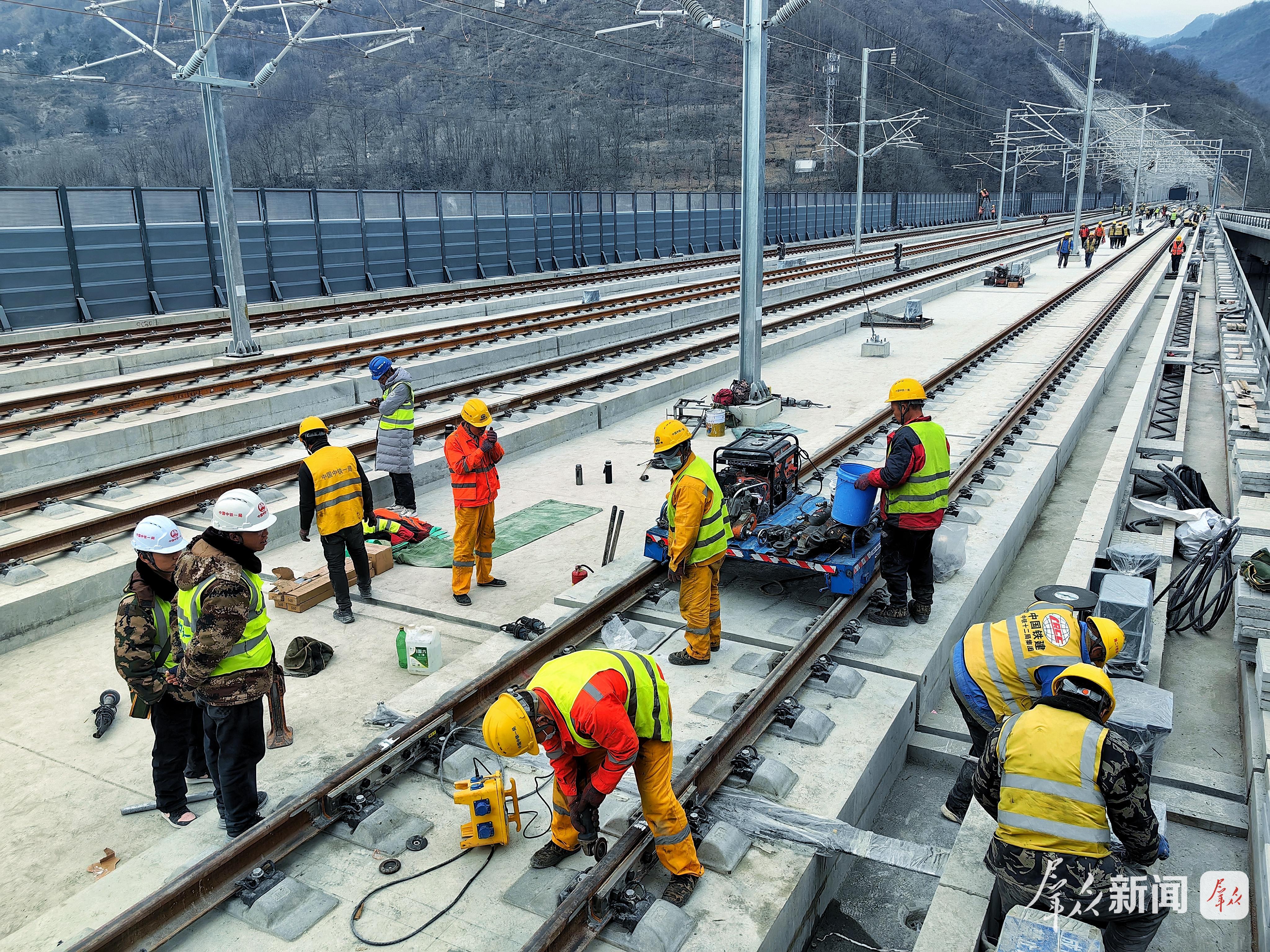 “随着全线铺轨完成,我们项目部离家较远的工人们都放假回家了,留守人员主要是党员。今年春节不停工,就是为了让山区群众能早日坐上高铁出行。”2月16日15时许,中铁十一局西康高铁项目部执行经理游敏带着班组在隧道内检测轨道精度。