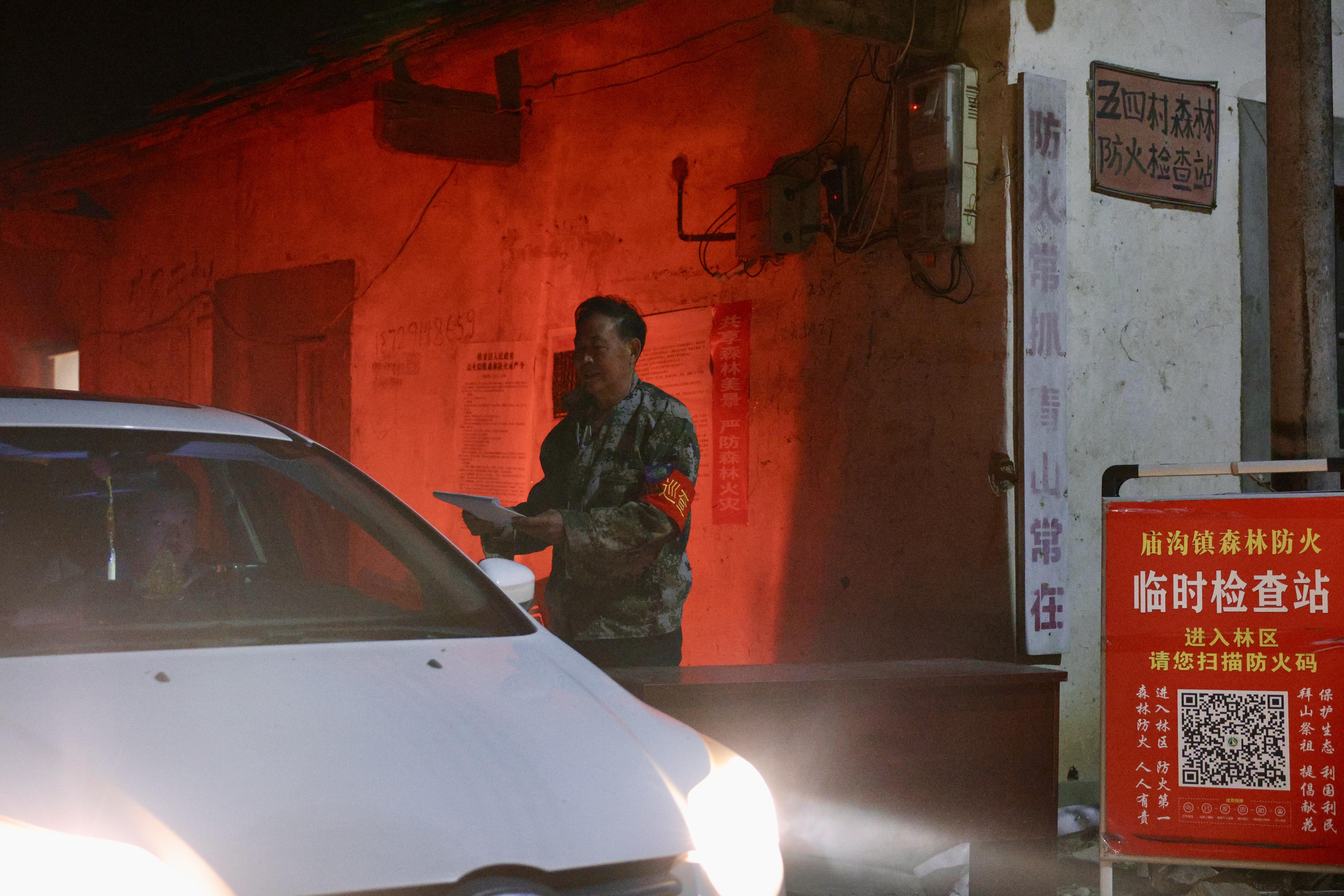 夜里九点多,五四村的喇叭车还在路上。舒鑫开着车慢慢巡着,车灯照着前面的山路,喇叭已经关了。“这个点已经不需要再宣传了,只需要盯着有没有火光。”舒鑫说。