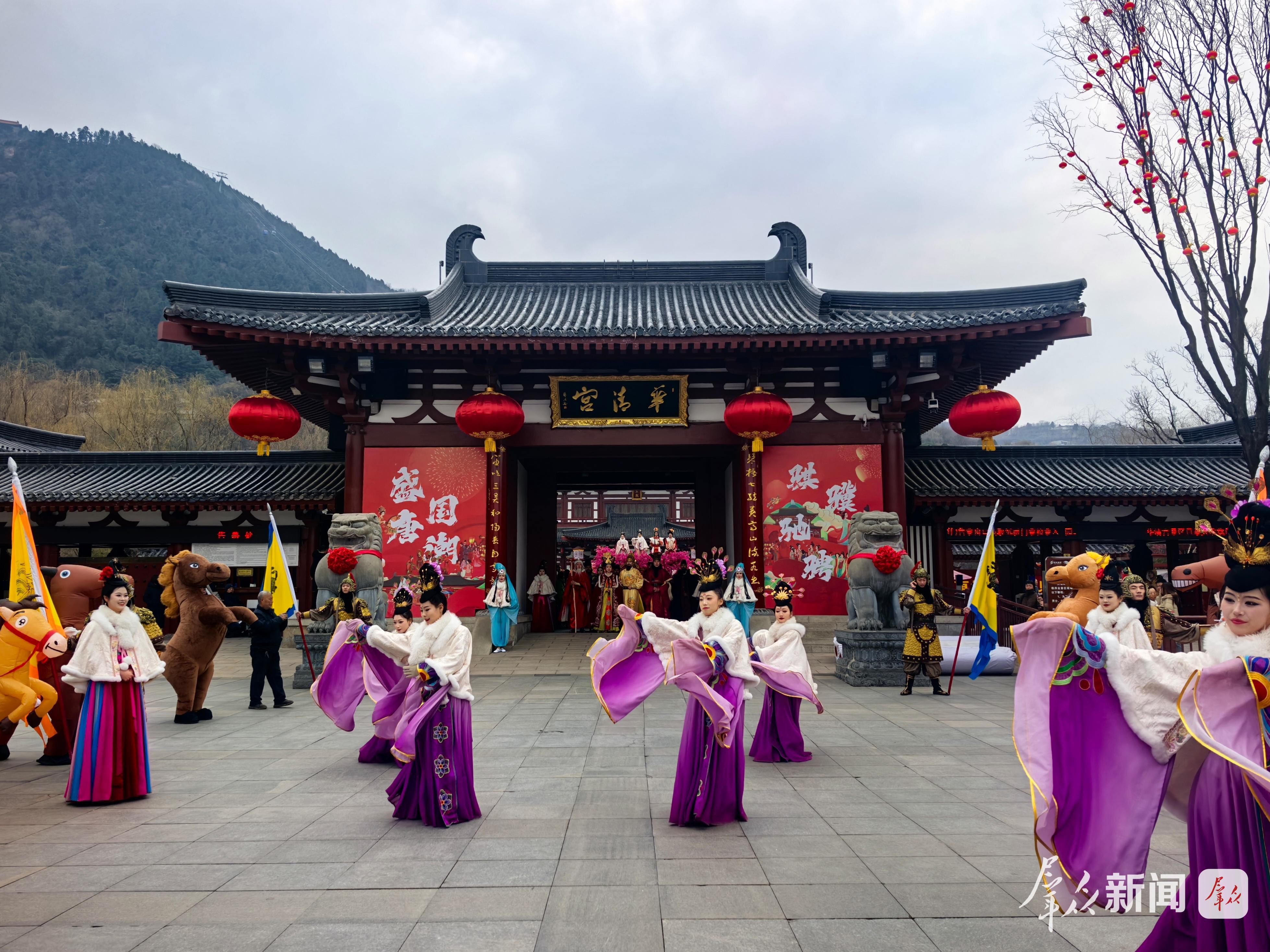 今年春节,华清宫景区以“盛唐国潮·骐骥驰骋”为主题,精心打造盛唐国潮游园会系列特色活动,每日近百场特色演出轮番上演,涵盖唐宫乐舞、花车巡游、舞龙舞狮等多种形式,将唐文化与新春民俗深度融合,全方位营造浓郁的盛唐年节氛围与市井烟火气息。