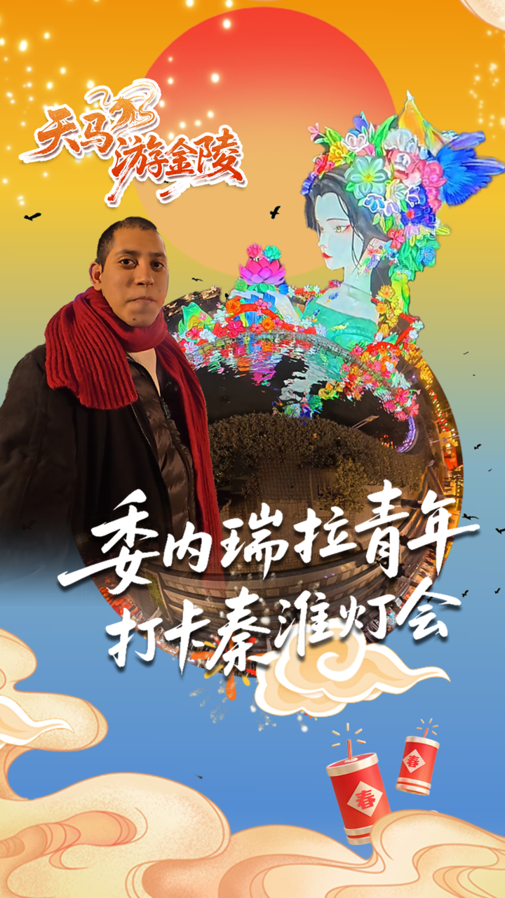 正月初一马年到!神骏天马降临,带国际友人游金陵。千年秦淮灯会迎来史上最大生肖灯组,赤焰神骏闪耀明城墙畔。来自委内瑞拉的青年Juan Diego恰逢本命马年,邀你在流光溢彩中感受金陵年味!