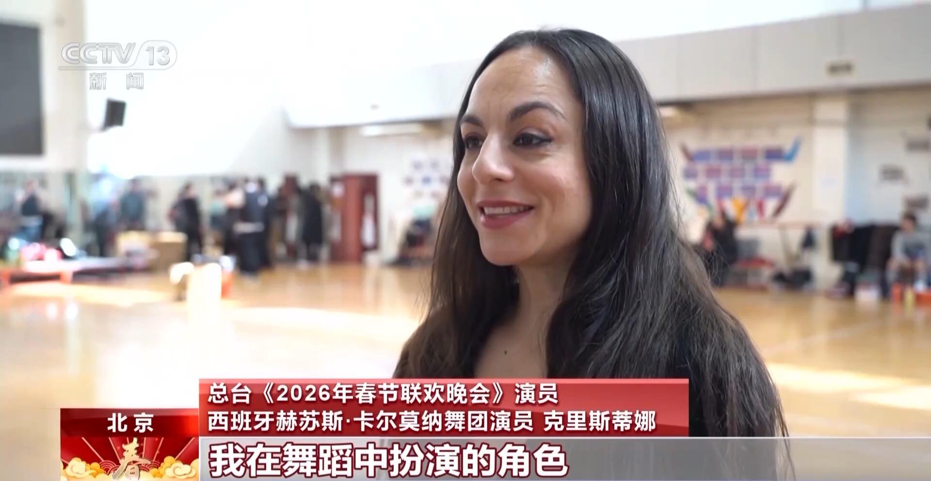 总台《2026年春节联欢晚会》演员 西班牙赫苏斯·卡尔莫纳舞团演员 克里斯蒂娜:我在舞蹈中扮演的角色展现了西班牙如火般的热情,这段舞蹈想要传递的是世界上的各个民族是可以融合在一起的。每个国家、每种文化都可以在团结中找到共鸣。这样的画面很美,也希望观众能享受这种独特的融合之美。