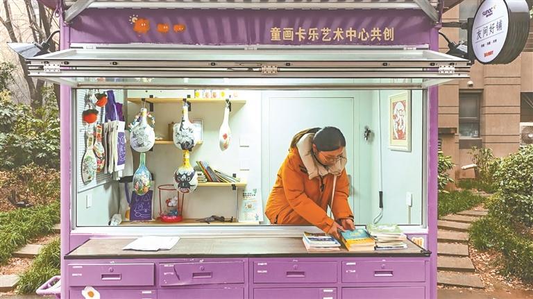 小区内一处废旧小亭也实现了“华丽转身”,成为“友间好铺”儿童活动基地。社区物业团队牵头完成硬件翻新与电力改造,家长和孩子手绘图画,让旧亭焕发出新活力。如今,亭内图书、玩具整齐摆放,成为孩子们的“小小图书馆”和“玩具交换站”,是社区里最受孩子欢迎的一个场所。