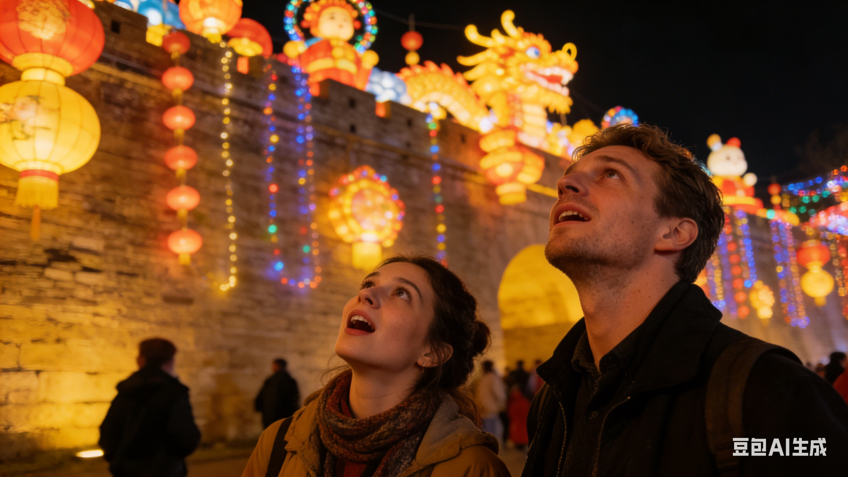 永宁门外,德国游客克里斯托夫难掩兴奋。他的行程单上,写满了与过去外国游客不同的期待:除夕夜看春晚,然后去大唐不夜城跨年,初一登大雁塔祈福。在回民街,同样来自德国的克里斯蒂安提着游玩时收到的福字笑得开怀:“城墙上的花灯美得让人挪不开眼,我还订好了年夜饭,要好好体验这一年俗。”