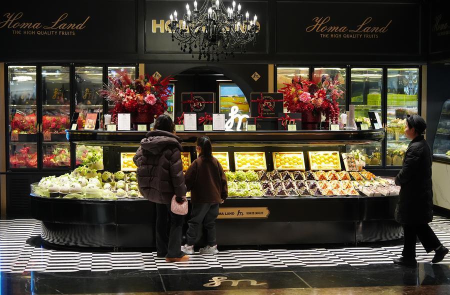 Customers buy fruits at a store in Xi'an, northwest China's Shaanxi Province, Feb. 17, 2026. (Xinhua/Shao Rui)