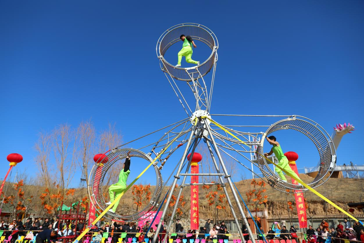 赤牛坬民俗文化村千人枣糕宴、木头峪古镇游神巡游、泥河沟古枣园灯会……今年春节,佳县积极整合地方特色资源,把新春文化盛宴送到群众家门口,推出“迎新春·助振兴”义写春联活动、县域特色文艺演出、非遗小剧场演出、民俗互动体验等一系列具有本土性和原创性的文旅活动。新编晋剧现代戏《枣树湾》、黄河戏曲巡游、陕北说书、晋剧演出、陕北婚俗等活动接踵而至,逛庙会、祈福纳祥“转九曲”、打铁花、火壶表演、捏花馍、二十四节气毛球粘贴画、马年窗花拓印、猜灯谜等丰富多彩的非遗活动则让春节文化更加立体丰富。