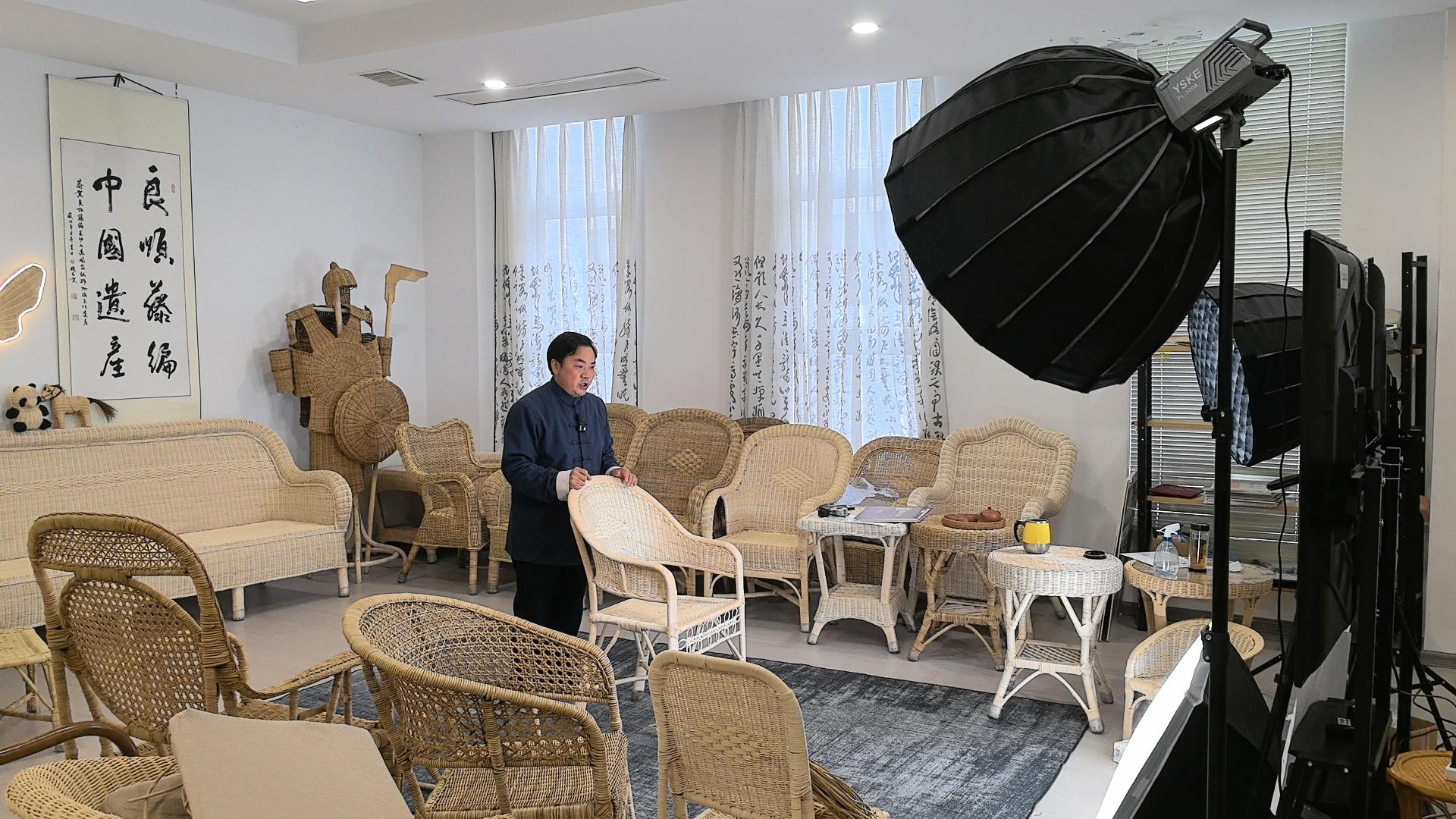 “陈老师是我们直播间的‘初代主播’,也是汉中藤编的活招牌,他特别支持直播事业。今年,我们改造升级的汉中藤编良顺新媒体运营中心正式启用,占地200平方米,共有6个直播间,主要进行汉中藤编、棕编、草编等‘五编’产品的直播销售,同时宣传推广非遗,带动周边村民就业。”陕西良顺匠心实业有限公司行政部经理郑艳说。