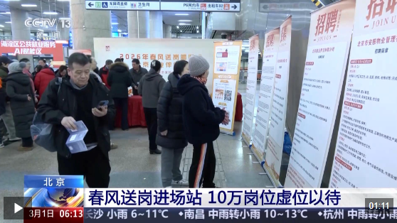 近日,北京市人力资源和社会保障局联合市重点站区管委会启动“春风送岗”公共就业服务活动,同步进驻北京西站等八大火车站以及首都、大兴两大机场,携10万个岗位直接对接进京求职者。