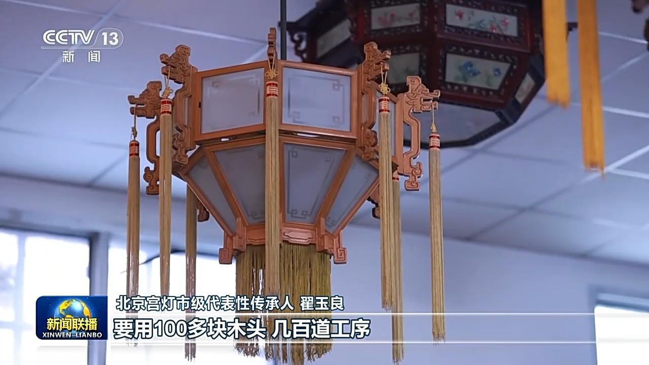 北京宫灯以木为骨,外镶绢纱或玻璃并施以彩绘,配以流苏、中国结等装饰,制作全程不使用一颗钉子,全靠榫卯结构精准拼合。