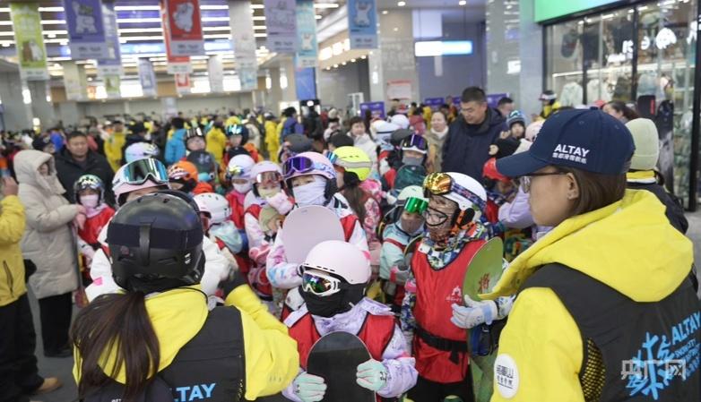 琳琅满目的滑雪装备和文创产品吸引滑雪爱好者目光 (央广网记者 丁安 摄)