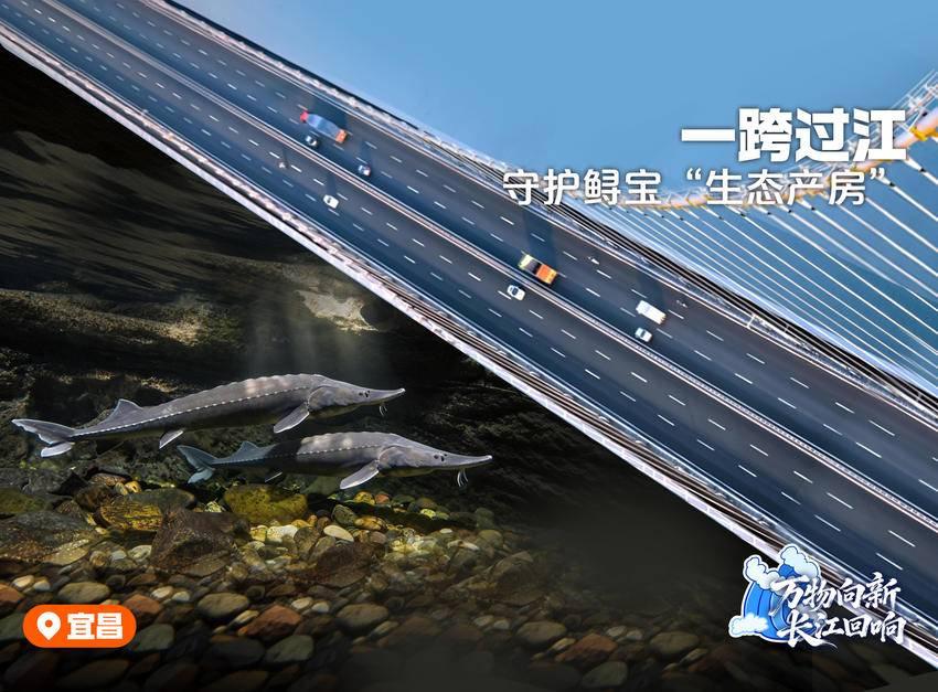 为使中华鲟洄游不受影响,伍家岗长江大桥采用主跨1160米悬索桥“一跨过江”方案,不惜增加1亿元投资,只为让中华鲟不受惊扰。