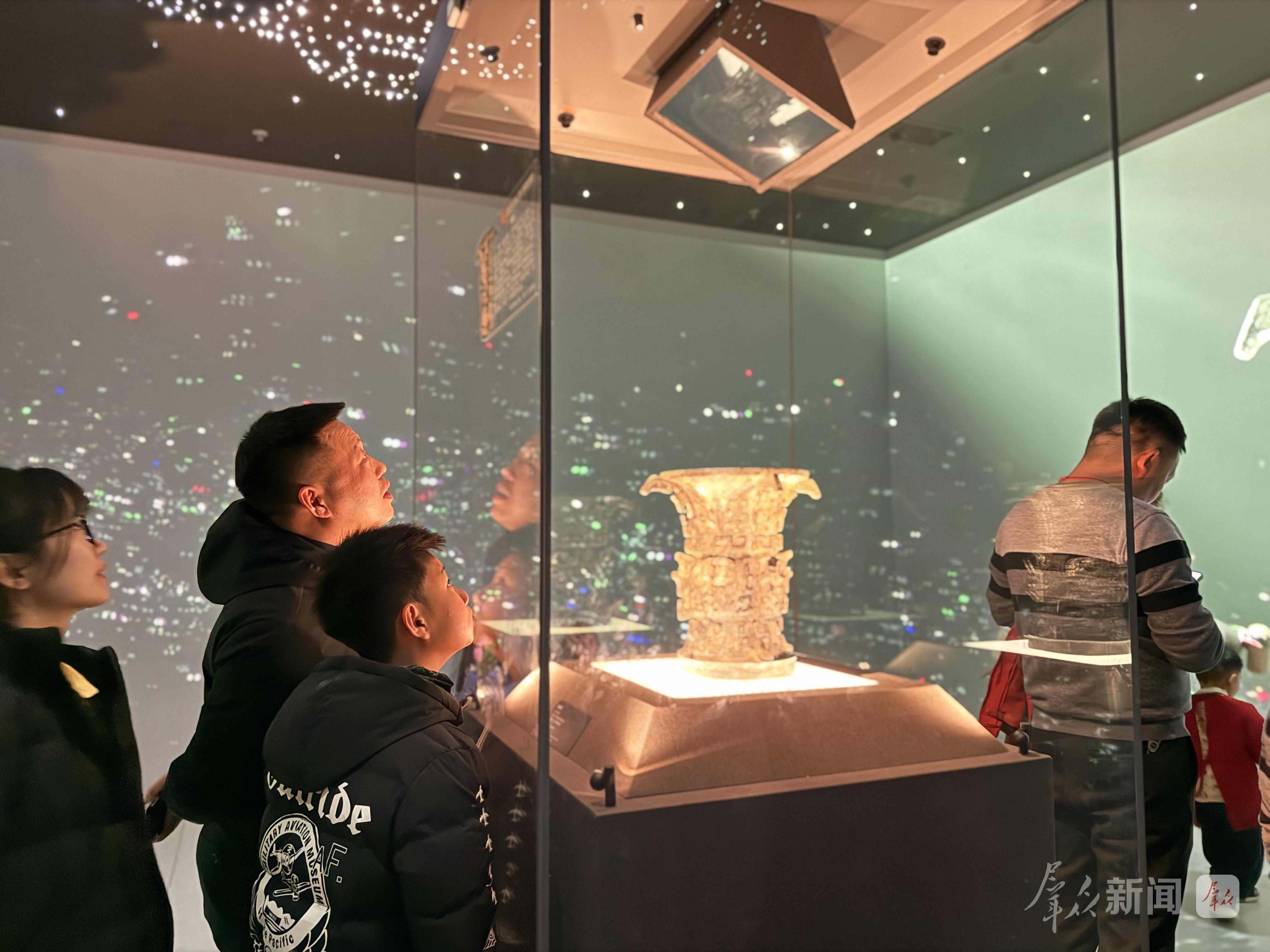 记者看到,全新呈现的基本陈列《青铜铸文明》,以6300平方米的展陈空间,精选1100余件(组)文物,清晰勾勒出周秦文明的脉络。在何尊展柜前,游客们不约而同地仰起头,借助反光镜,只为看清尊底那跨越数千年的“中国”二字铭文。