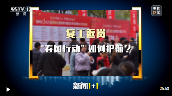 节后复工一周,用工需求持续释放,返工返岗保障持续加强。提供就业岗位,如何实现精准对接?强化技能培训,怎样让务工者能就业、就好业?本期《新闻 1+1》关注:复工返岗,“春风行动”如何护航?