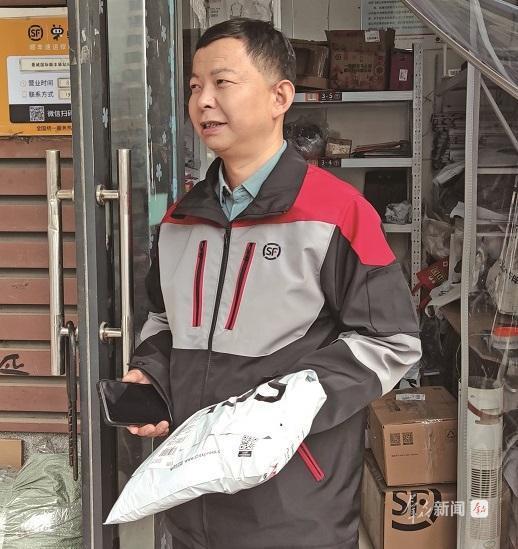 郝飞飞今年42岁,是陕西顺丰速运有限公司的一名快递小哥,负责西安市雁塔区沣东片区富源三路营业部收派件工作。