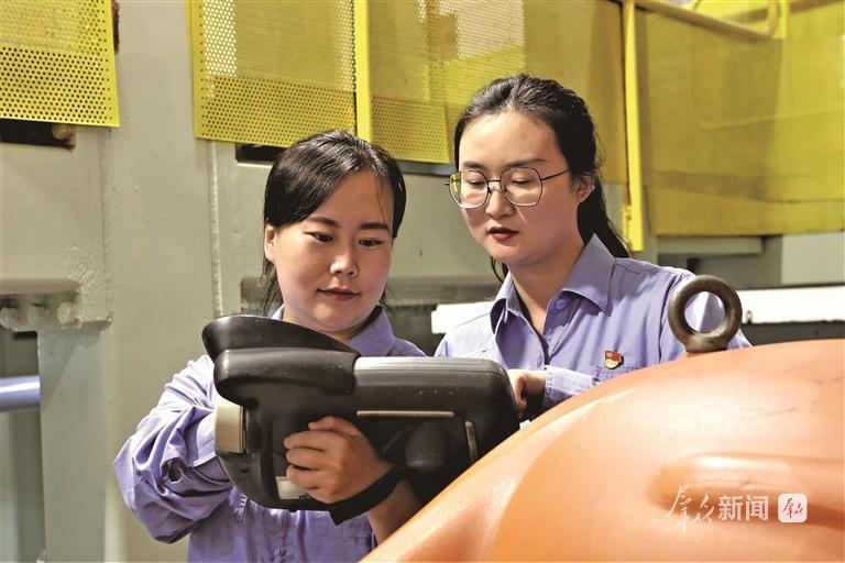 胡洋和党紫维是新时代巾帼班组“薛莹班”组建之初的首批成员,是班组里并肩成长的技术伙伴。白天扎根生产现场钻研设备实操技巧,晚上在自动化领域探索学习,凭着这股不服输的劲儿,胡洋不仅熟练驾驭各类数字化设备,还一步步成长为大国工匠。党紫维在生产现场虚心向老师傅请教经验,对着设备反复琢磨操作要领、研究运行逻辑,很快成长为数字化装配业务骨干。