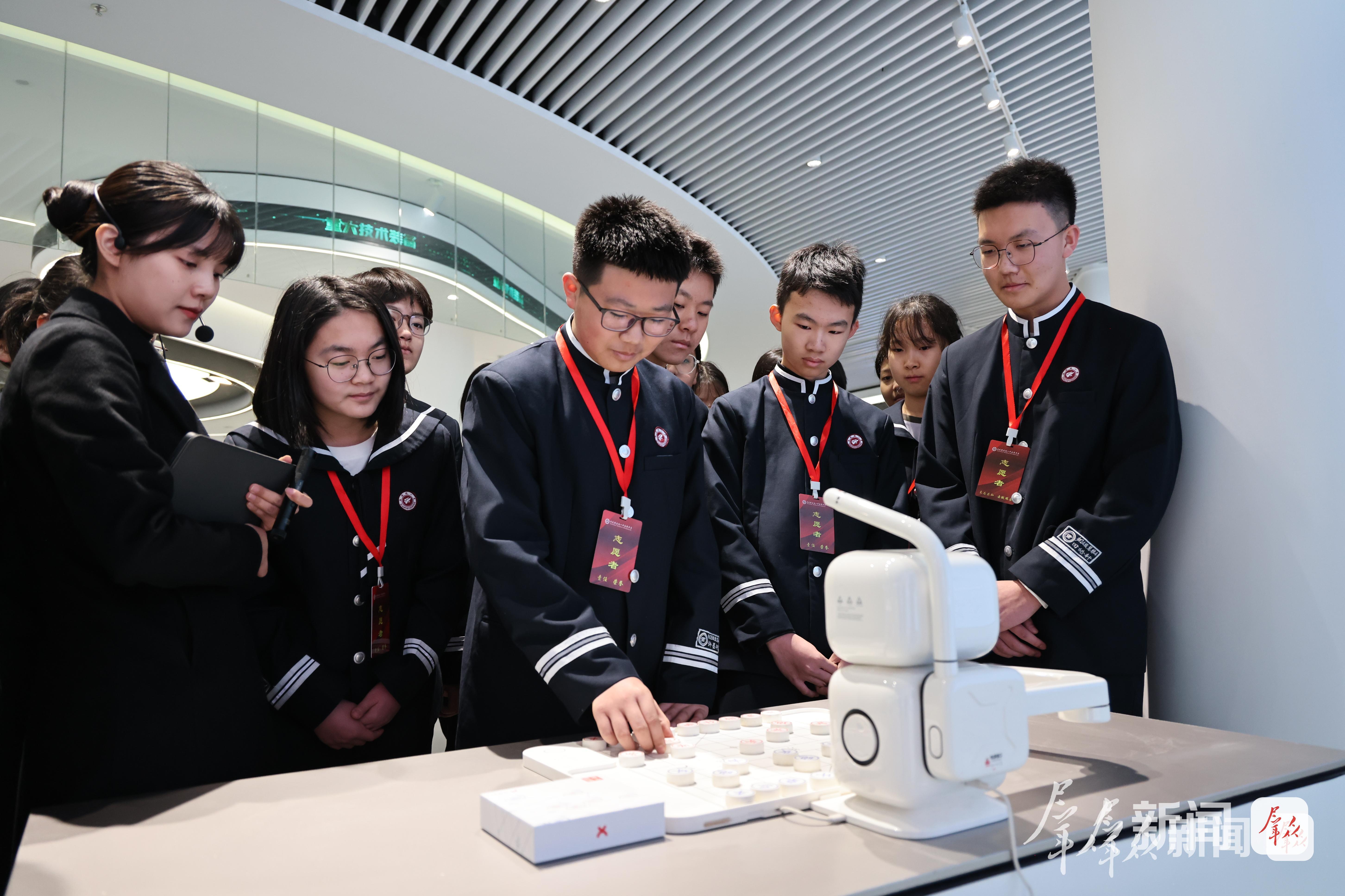 他们与AI下棋机器人对弈,落子间,人工智能的精准运算、灵活应对让大家惊叹不已。聆听讲解员对无人机发展历程的介绍,大家深刻感悟到陕西在航空航天领域的深厚底气,眼神中满是对航天科技的向往,民族自豪感油然而生。