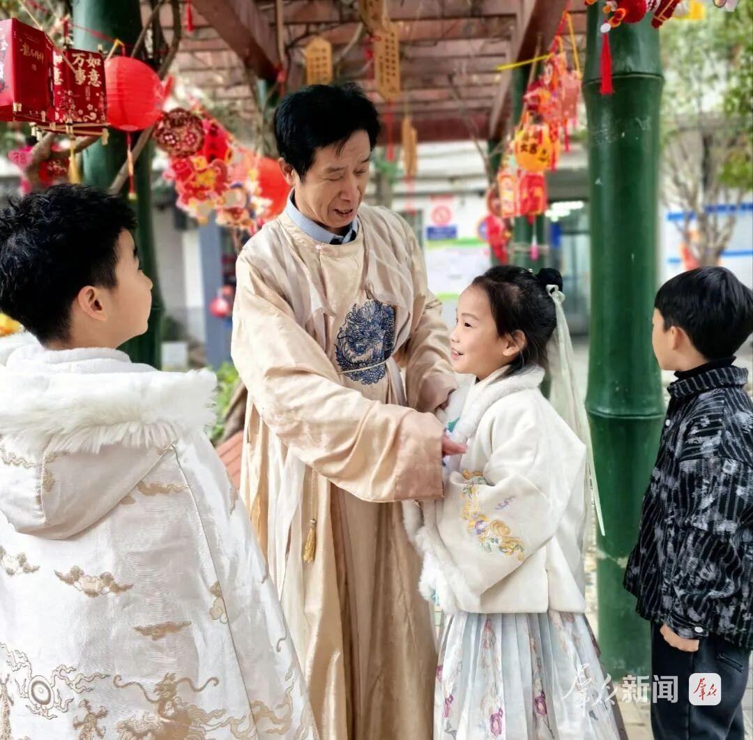 陕西省西安师范附属小学以“诗韵游园”开启新学期,同学们身着传统服饰,手捧自制马年花灯漫步校园,参与猜灯谜、练书法、吟诗词、玩蹴鞠等12项传统游艺活动。