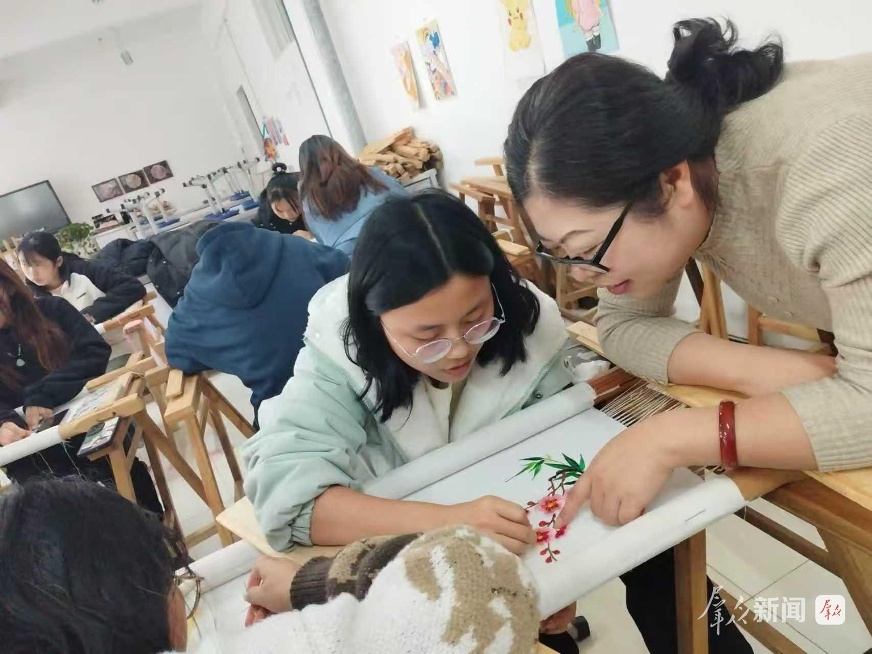 “传承不是守旧,创新才能长久。”崔萌在采访中说。为让秦绣真正“活起来”,她打破传统技艺的封闭圈子,坚持非遗进校园、进社区、进乡村,先后走进西安美术学院、陕西师范大学及全区40多个单位、村镇,开设公益课堂、举办技能培训,累计免费培训学员超6000人次。她把课堂搬进乡村小院、农家炕头,手把手向农村留守妇女、残疾人教授刺绣技艺,带动500余名妇女依靠手艺增收致富,帮扶残疾学员实现就业增收,用一根丝线串起文化传承与民生幸福。