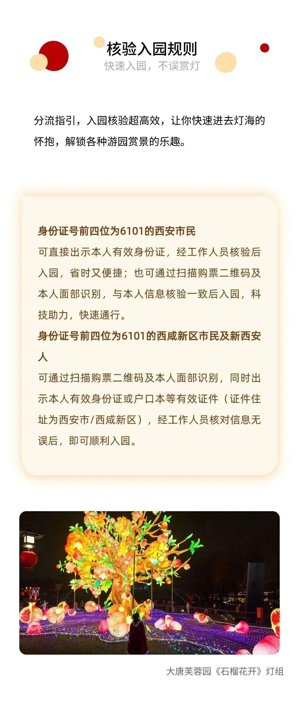 须通过扫描购票二维码及本人面部识别,同时出示本人有效身份证或户口本等有效证件(证件住址为西安市/西咸新区),经工作人员核对信息无误后,即可顺利入园。