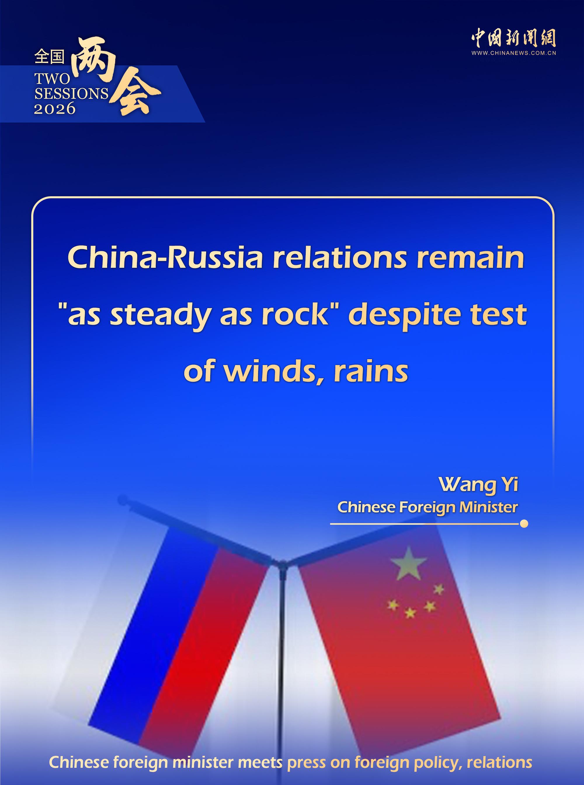 China-Russia relations remain "as steady as rock" despite test of winds, rains.