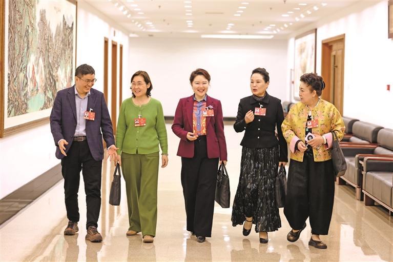 3月6日下午,十四届全国人大四次会议陕西代表团小组会议结束后,代表们在会场外边走边议。 群众新闻记者 母家亮摄