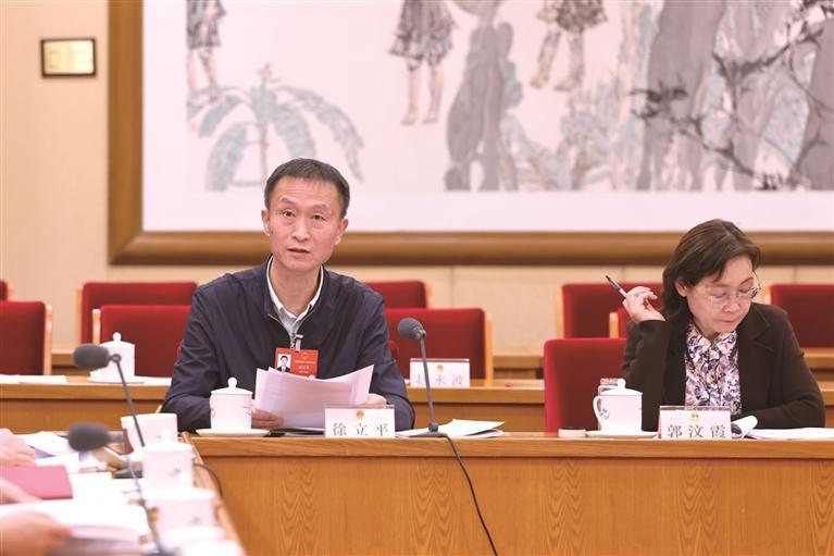 3月9日下午,十四届全国人大四次会议陕西代表团举行小组会议,代表们认真审议全国人大常委会工作报告。图为徐立平代表在审议中发言。群众新闻记者 母家亮摄